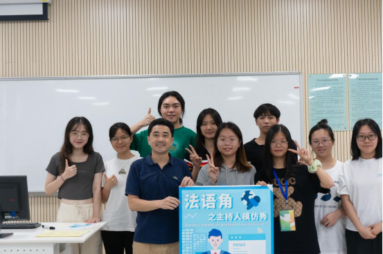 本次法语角活动主题是“主持人模仿秀”,由外教Frédéric老师主持举行,参与人员有20级、21级和22级的学生。在本次活动中,Frédéric老师为学生们播放了相关的视频,并深入地解析了在阅读新闻稿上需要注意的内容。同学们在接受老师的指导之后进行了大约五分钟的练习,练习结束后,在老师的指导和同学们的努力下,同学们的法语音调获得了巨大地进步,交上了自己满意的“答卷”。