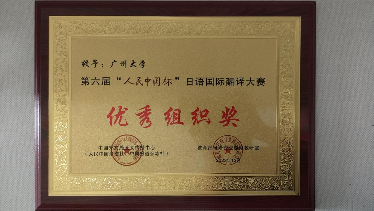 第六届人民中国杯日语国际翻译大赛颁奖典礼于2024年1月7日在广东外语外贸大学完美落幕。我院日语201刘思君、日语211邝君怡荣获二等奖;日语211胡可心、日语212陈桐欣等五名同学荣获三等奖;日语201郑若欣等四名同学荣获优秀奖;魏育芳老师荣获“优秀指导老师”称号。热烈祝贺我院学生在此次大赛中取得优异成绩!为表彰我院同学踊跃投稿,主办方授予我院“优秀组织奖”。