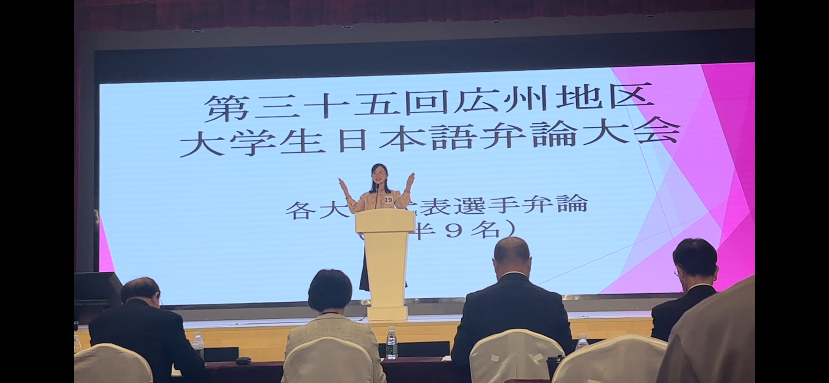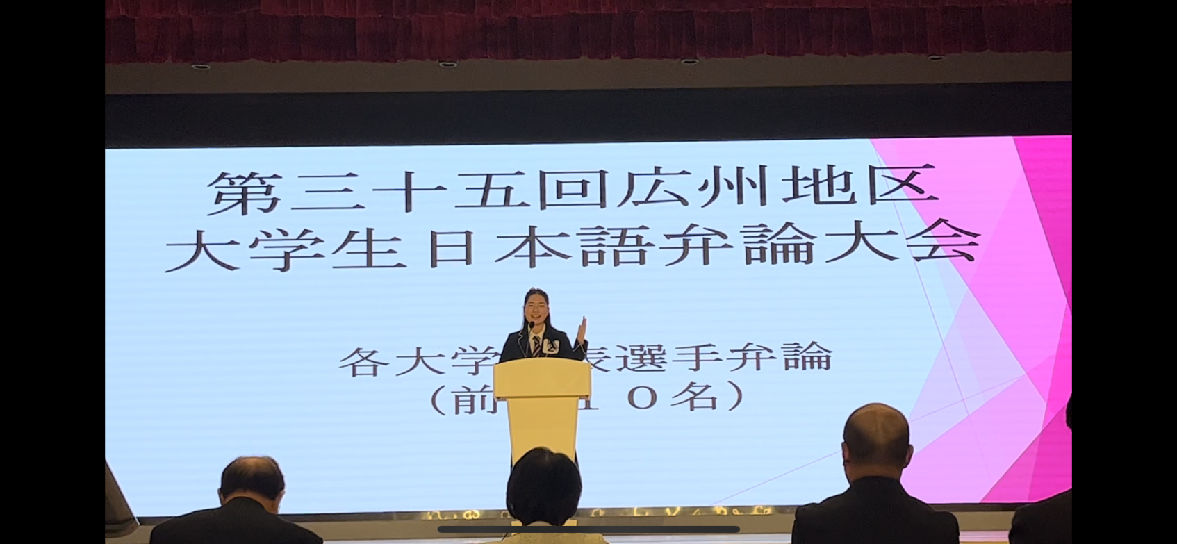 2024年3月16日,第35届广州地区大学生日语演讲比赛在广州国际交流合作中心举办。该演讲比赛由日本国驻广州总领事馆、广东外语外贸大学、广州日本商工会主办,广东外语外贸大学、中山大学、暨南大学等11所高校参赛。我院日语专业211班胡可心、221班谢清婷作为学校代表参加了此次演讲比赛。胡可心同学荣获“二等奖”,获得前往日本研修一周的奖励,谢清婷荣获“优秀奖”,冀媛媛老师荣获“最佳指导教师奖”。