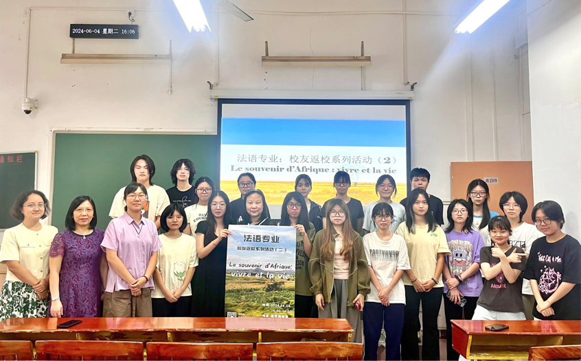 6月4日下午,我院法语专业在桂花岗校区5号楼南209举办了第二次优秀校友返校活动。西语系主任邹琰老师、副主任陈潇老师、李悦老师、卢秋燕老师,20届毕业生王舒蕾以及法语231班同学参加了此次活动。