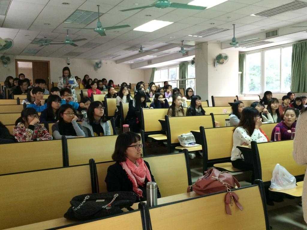 12月2日下午,来自法国驻广州总领事馆语言教育合作项目官员Ms Stéphanie Cheminard和法国高等教育署广州中心推广与留学指导部负责人谢建云(Ms Ophelie XIE)在我院进行了一场有关留学法国的专题讲座。法语系邹琰主任、陈潇老师以及法语专业的同学们出席了本次活动。