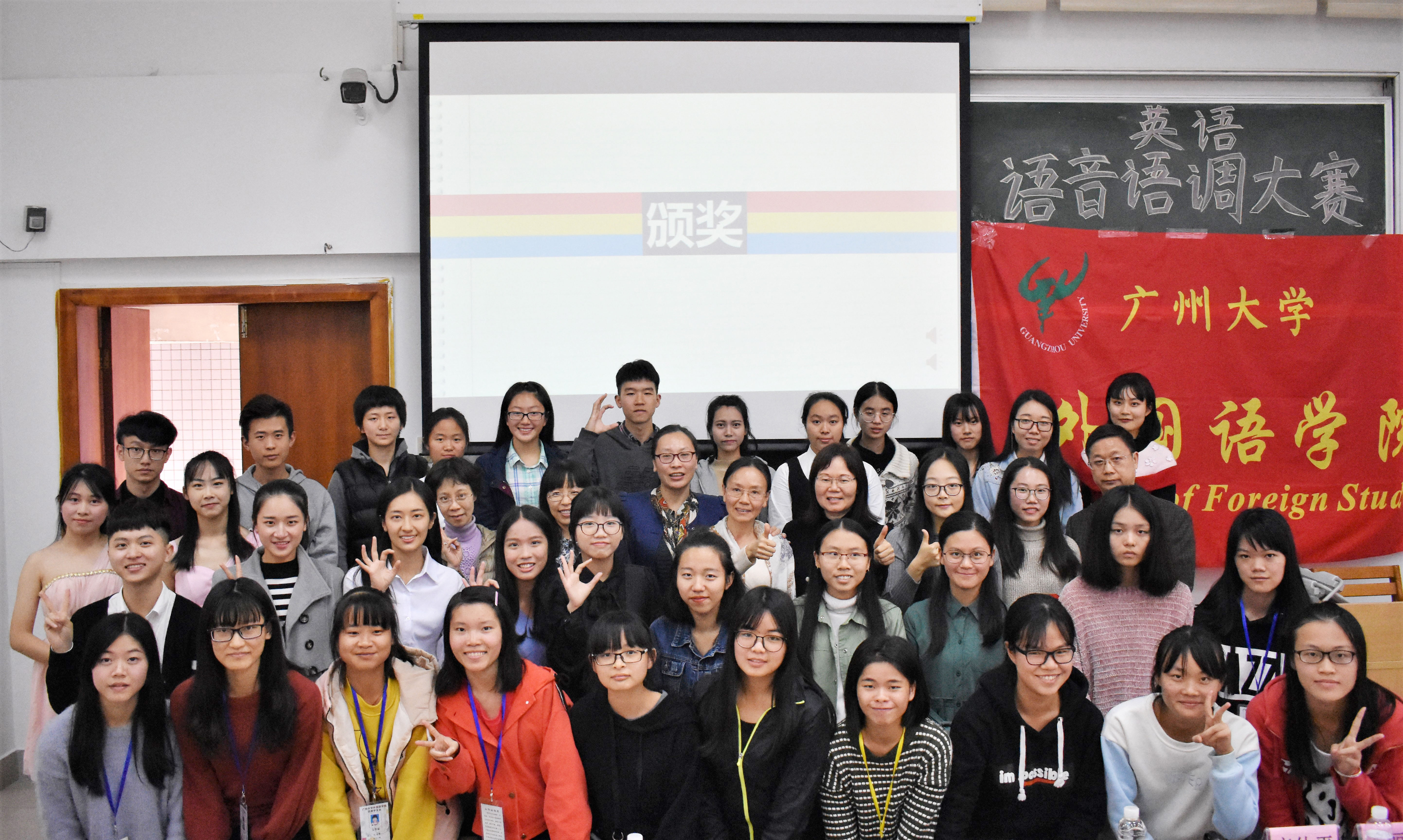 学院主管教学的苏远连副院长以及语音课教学团队五位老师出席了本次大赛并担任评委。2017级新生18位同学通过本班的预赛入围今天的决赛,四位大二、大三的同学获老师推荐担任表演嘉宾,150多位同学观摩了此次比赛。