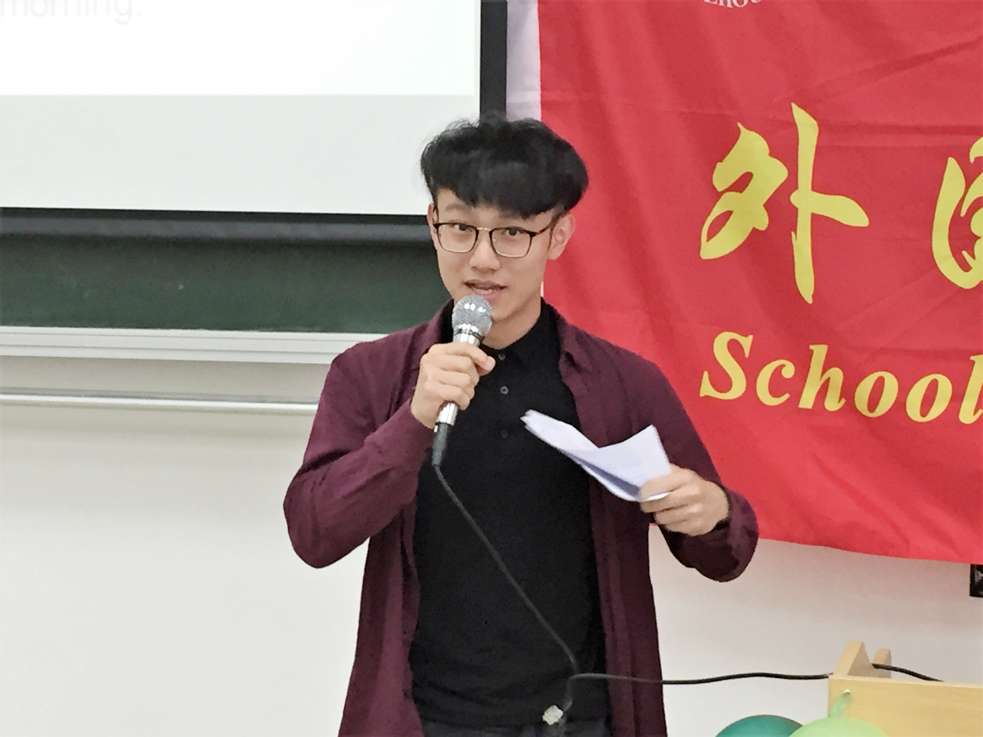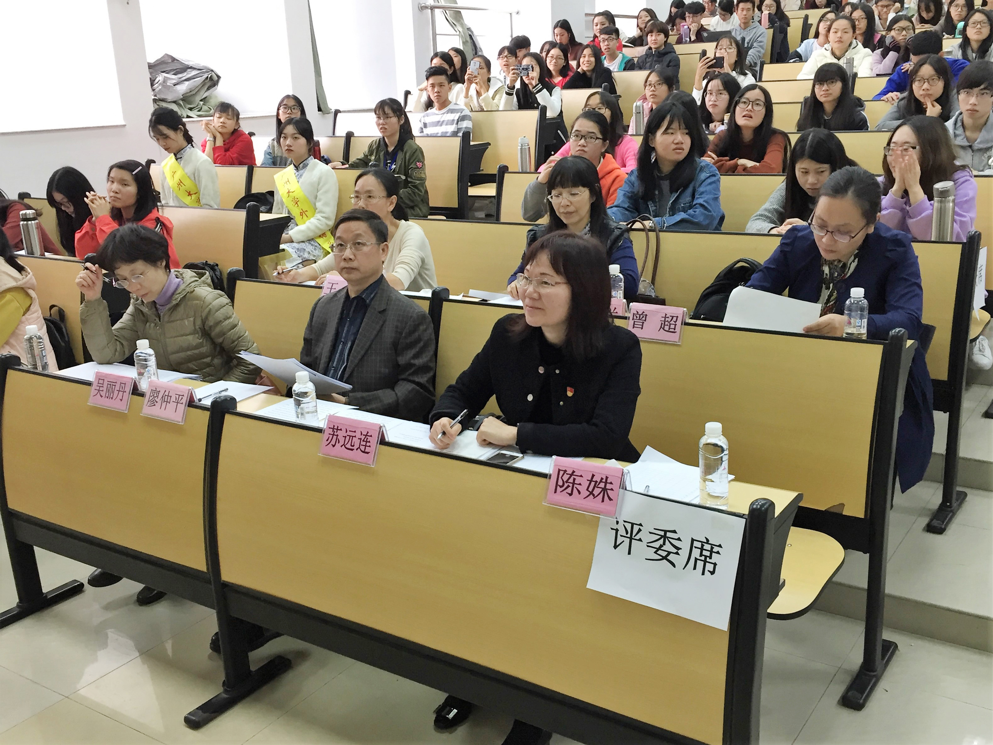 英语系师生们“翘首以盼”的首届英语语音语调大赛如期在文新511阶梯课室拉开帷幕。