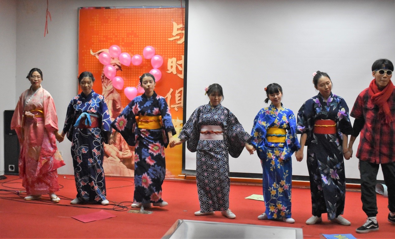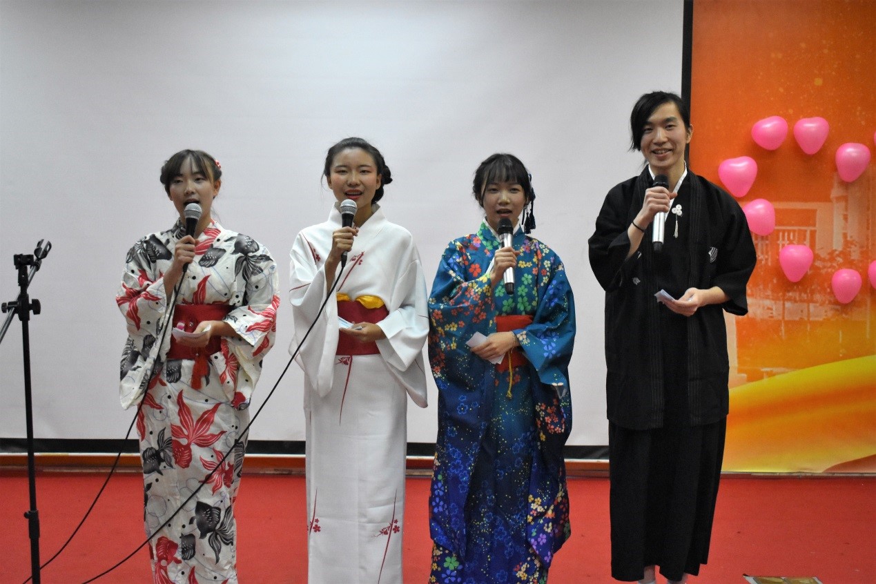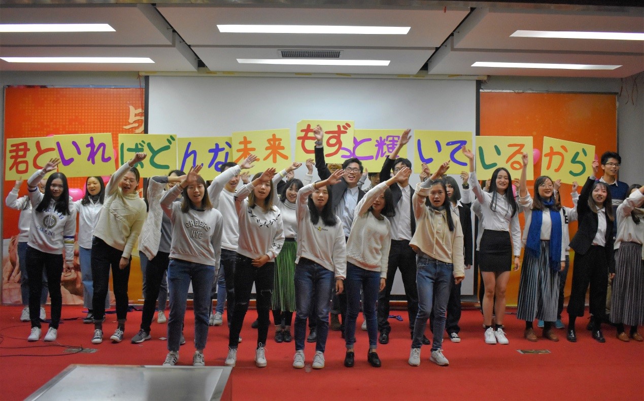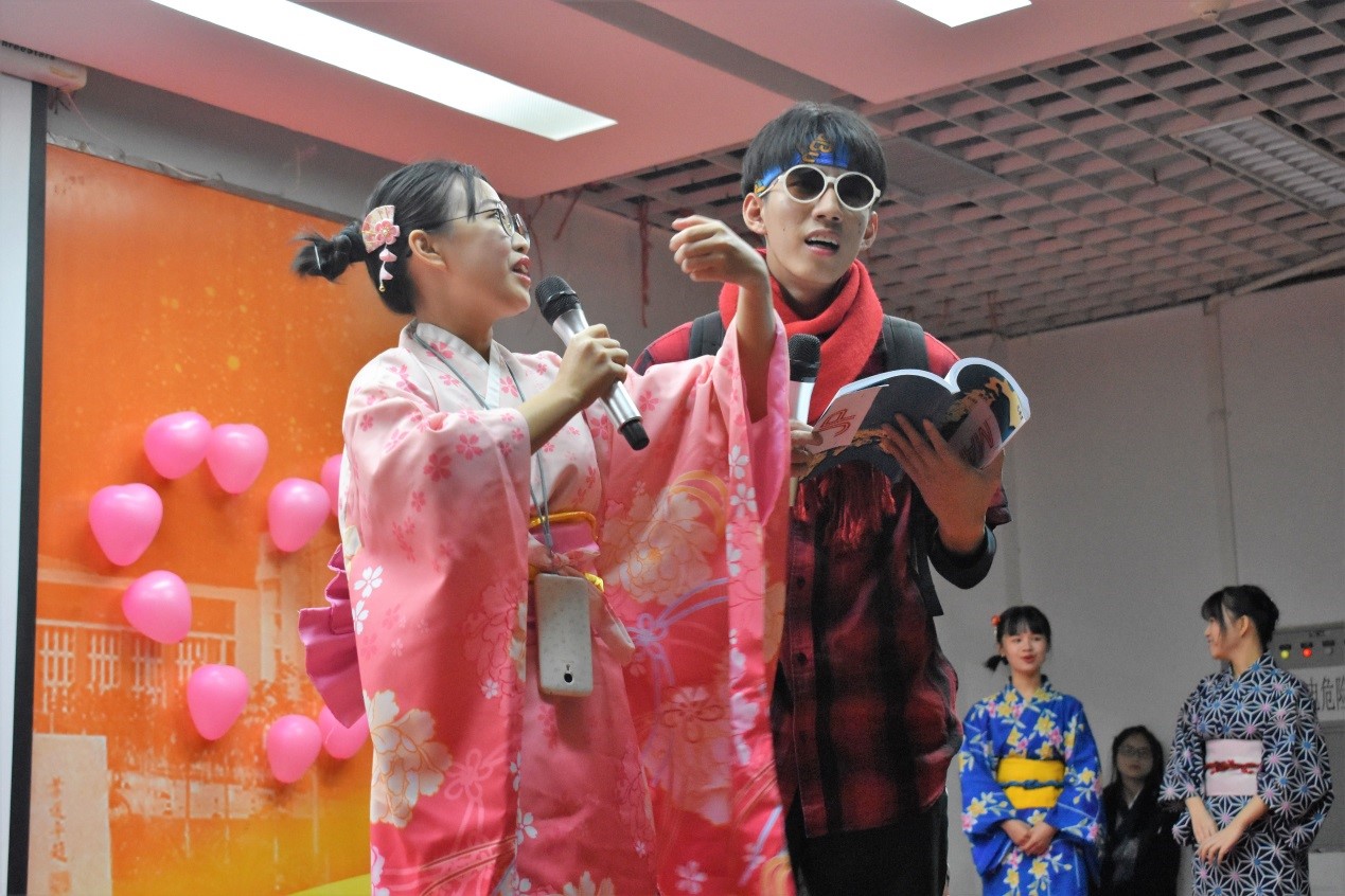 日语151的前辈们一上场就让大家欢笑不断,好听的和式趣味歌曲还有身着和服的舞蹈平添了不少趣味,不仅如此,更让大家对日语与英语之间的差异有了更深刻的理解。