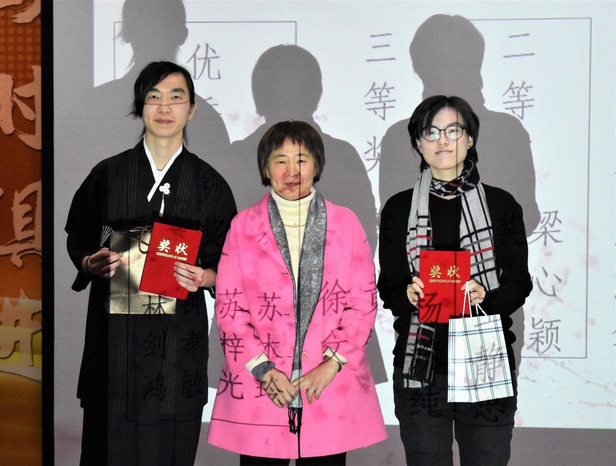 节目接近尾声,对于这一年的总结,我们对表现优异的同学们进行了表彰并由李莹莹老师发表总结词。