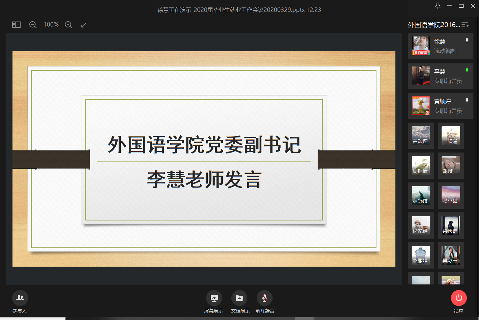 党委副书记李慧老师、2016级辅导员黄顺婷老师、2016级就业工作负责人徐慧老师以及全体2016级学生参加此次会议。