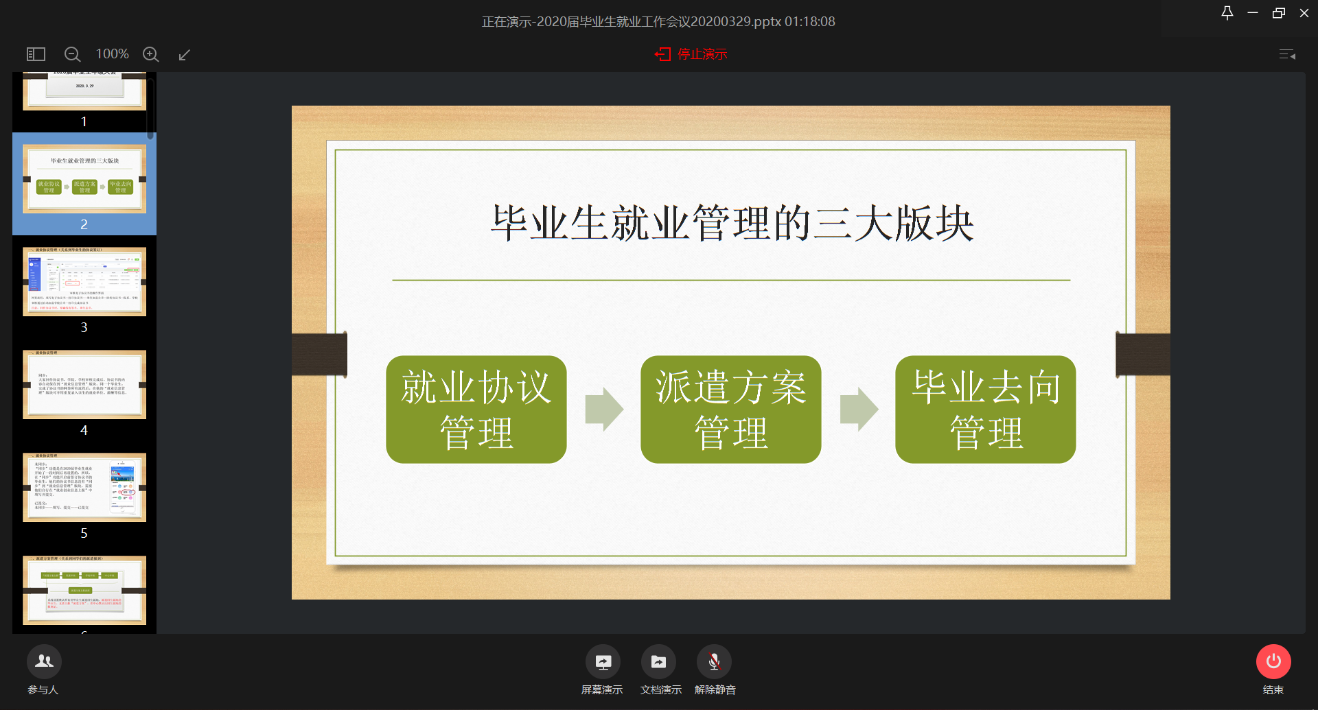随后,黄顺婷老师给同学们介绍了离校手续办理程序及规定、就业求职诈骗套路、党团关系转移细则以及毕业生医保等问题。提醒同学们在线上找工作的过程中,一定要防止被骗,抵制高薪诱惑、传销陷阱等诈骗手段。