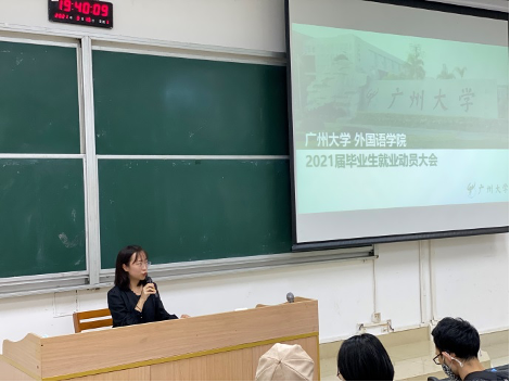 2021年3月15日晚,我院在文新楼106教室召开了2021届毕业生就业动员大会,我院负责就业工作的辅导员唐梓轩主持会议,学院党委副书记许多恬出席会议,学院2021届在校毕业生参加了会议。