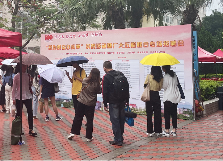 、数学与信息科学学院、教育学院(师范学院)、人文学院和马克思主义学院五院共同承办的“我为群众办实事”实践活动暨五院联合专场招聘会在文俊东楼架空层举行。
