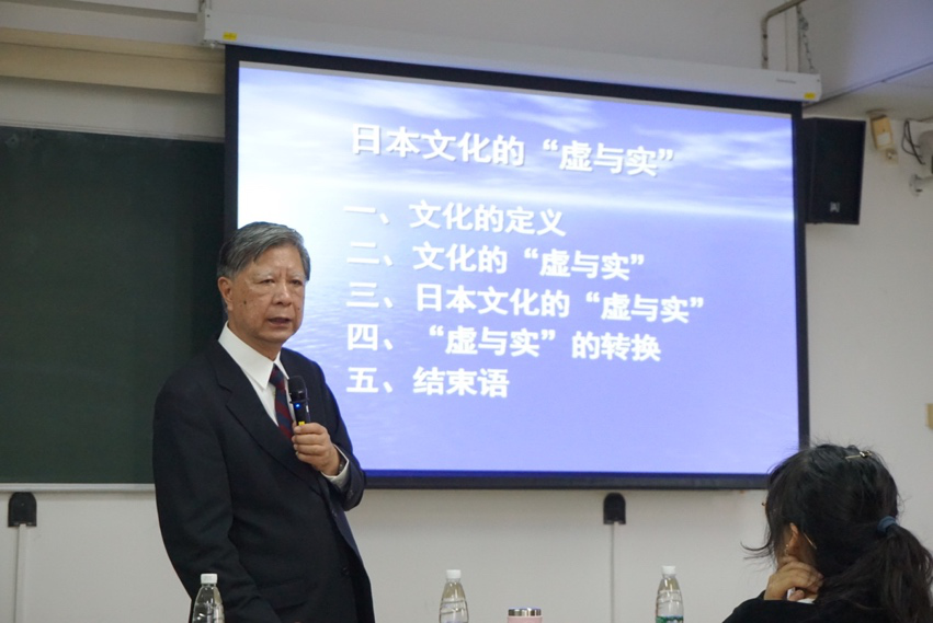 2020年11月17日下午,中国教育国际交流协会原常务理事、日本广岛大学客座教授林佐平教授应邀为我院东语系日语专业的师生做了一场题为“关于日本文化的‘虚与实’——论其存在与影响”的讲座。该讲座由日语专业教师欧丽贤博士主持,我院日语专业师生参加了本次讲座。