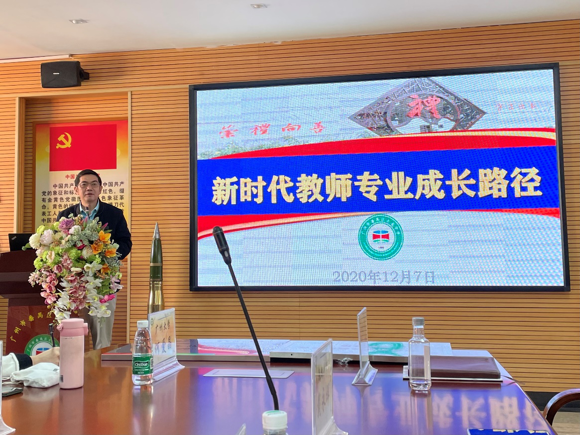 2020年12月7日星期一上午,广州市番禺区大龙中学邓正光副校长我院在该校实习的14名英语(师范)专业实习生们举办了主题为“新时代教师专业成长路径”的讲座和面对面交流活动