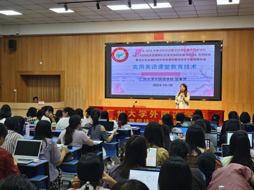 翁素贤老师分别在潮州、汕头两地开展《实用英语课堂教育技术》讲座,为潮州市小学英语教师和汕头市龙湖区初中英语教师介绍一系列实用的课堂教学工具。何爱晶教授为潮州市小学英语教师带来《小学英语学科融合的路径和方法》专题讲座,并对潮州市饶平县海山镇中心小学教师团队项目案例----《争当“绿美饶平”小导游》进行专业点评,就项目化教学设计和实施提供了建设性的指导意见。在与潮州市小学英语教师的互动沙龙活动中,陈姝副教授和陈丽虹副教授等现场答疑,就新教材的使用、学科融合、教育技术等问题进行了解答,提供了实用的教学建议。以上系列教育帮扶活动受到了潮汕地区两地中小学英语教师的一致好评,纷纷表示讲座内容丰富,实用性强,教学沙龙形式的现场交流高效,有助于教学水平的提升。